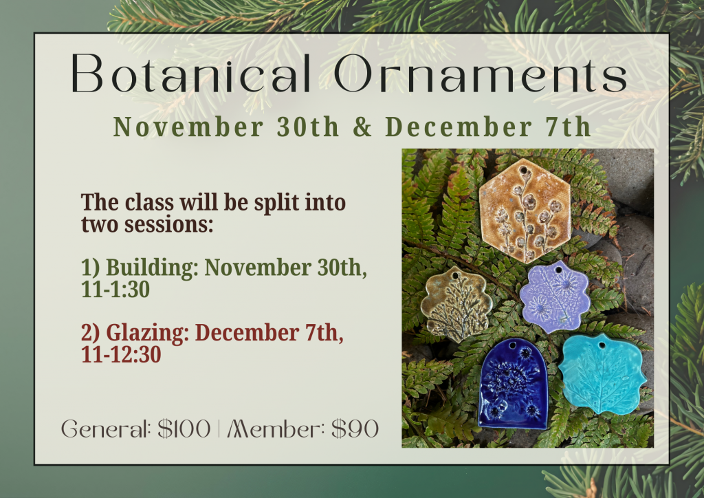 Tis the Season create some decor for the Holidays! Artist, Heather Skinner, is coming to teach you how to build ceramic trees from scratch. We will be forming trees out of slabs of clay that we will roll out. You will be guided each step of the way and encouraged to add your own creative flair. You will get to create 3 or more trees, depending on the size. *All materials will be provided* This workshop makes a great gift!